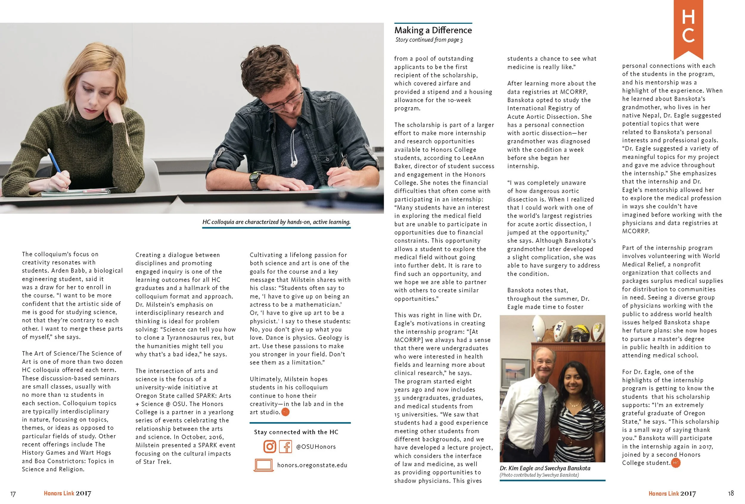 The Honors College at Oregon State University is a community of dreamers. Sharing these narratives with the world required a re-envisioned layout of the then-defunct college magazine. Here’s how I redesigned the magazine, and then fine-tuned in the second year of the redesign.