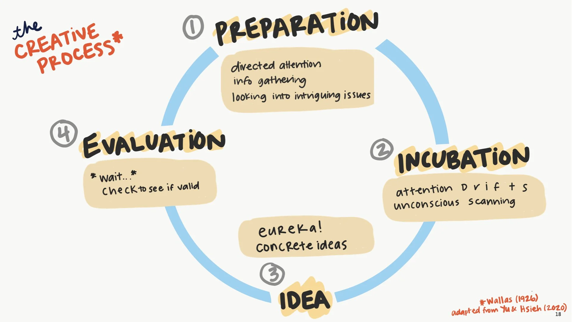 Growing research affirms that nature has a significant influence on multiple parts of the creative process. Specifically, the creative process consists of four steps: preparation, incubation, the idea stage, and evaluation. The preparation stage is when we direct our attention to a topic, start gathering information and look into issues that we find intriguing and evoke our curiosity. In the incubation stage, we engage in conscious work stops and attention drifts to other subjects, but unconsciously, the creative process continues. This unconscious scanning is based on personal, visual and sensory attributes. The idea stage is when we have concrete and conscious ideas. Finally, the evaluation stage is the check to determine if our insight is valid and rationally worth pursuing.